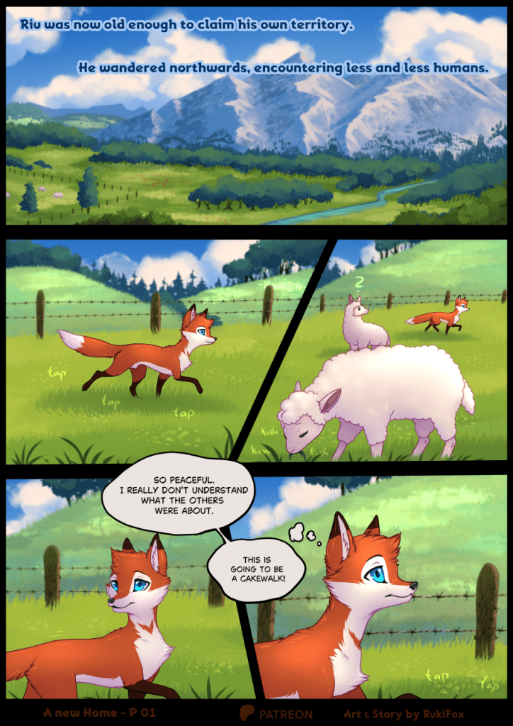 This story is about a young male red fox, Riu, who wanders away from home to find his own territory.